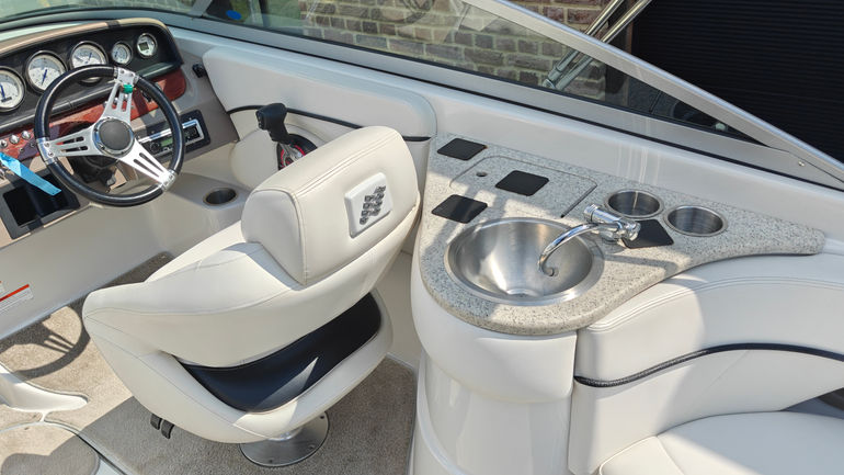 Deze prachtige Four Winns H240 Bowrider met Mercruiser 350 MAG Bravo 3 is in topstaat. De boot is van 2016. De boot heeft altijd op zoet water gevaren. Hij is in hele nette staat en voorzien van talloze opties en accessoires onder andere: douche, wasbakje, goed afdekzeil, enz. De historie is gedocumenteerd zo ook het recente onderhoud. Deze boot staat garant voor onbezorgd watersportplezier. Een liefhebber / kenner weet de kwaliteit van de Four Winns H240 te waarderen. De boot wordt als set met een Freewheel 3514 GT-E trailer verkocht (bouwjaar 2008). Deze trailer is afgesteld op de boot: verzwaard neuswiel, lier, centreerinrichting en reservewiel zijn aangebracht op de trailer.